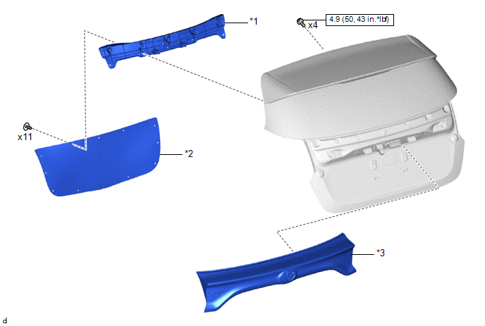 | *3 | BACK DOOR OUTSIDE GARNISH SUB-ASSEMBLY | - | - |