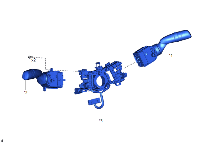 | *1 | WINDSHIELD WIPER SWITCH ASSEMBLY | *2 | TURN SIGNAL SWITCH |