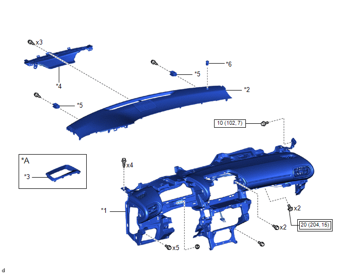 | *7 | INSTRUMENT CLUSTER FINISH PANEL ORNAMENT | *8 | INSTRUMENT PANEL PASSENGER WITHOUT DOOR AIRBAG ASSEMBLY |