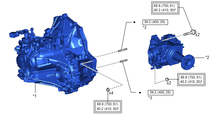 | *1 | MANUAL TRANSAXLE ASSEMBLY | *2 | TRANSFER ASSEMBLY |