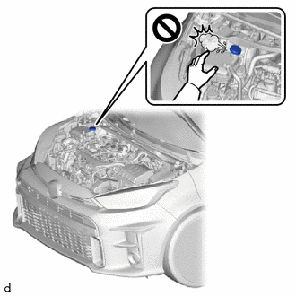 Do not remove the radiator cap sub-assembly while the engine and radiator assembly are still hot. Pressurized, hot engine coolant and steam may be released and cause serious burns.