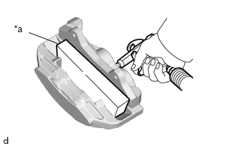 (b) Using an air gun, gradually apply compressed air until the 4 front disc brake pistons touch the wooden block.