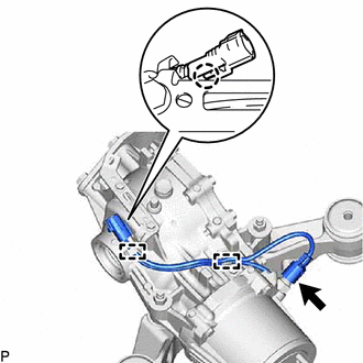 | (a) Remove the 2 bolts and rear differential breather plug oil deflector from the rear differential carrier. |