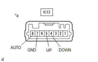 If the result is not as specified, replace the power window regulator switch assembly. |