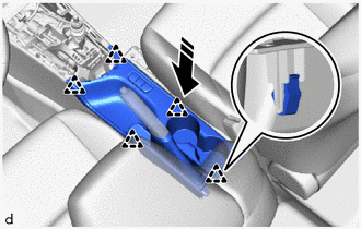 (d) To avoid damaging the console box assembly, make sure that the guide (A) is securely and correctly engaged.