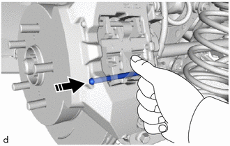 | (b) While pressing the rear disc brake anti-rattle spring, install the rear disc brake anti-rattle pin (lower side). |