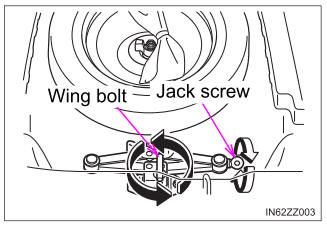 - Insert the wing bolt into the jack with the jack screw pointing to
