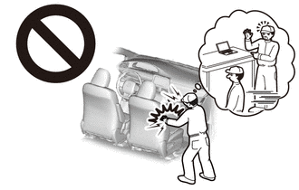 If there is any damage or deformation of airbag installation components or the areas they are installed to, do not attempt to repair them. Replace the damaged components with new ones.