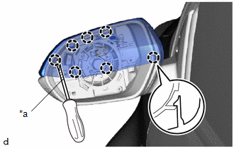 | (a) Using a screwdriver with its tip wrapped in protective tape, disengage the claws from upper side to remove the outer mirror cover. | |