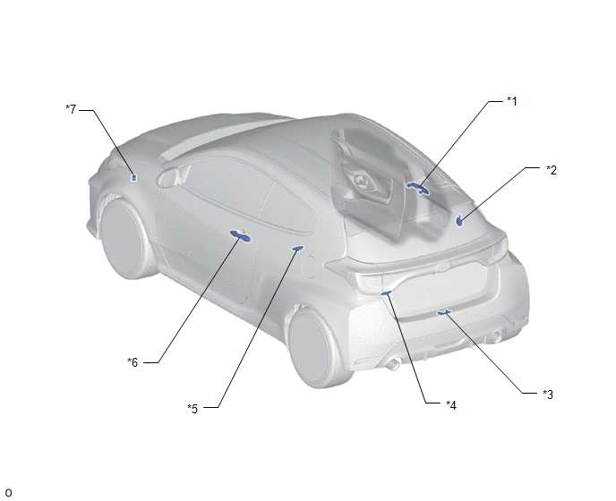 | *3 | ELECTRICAL KEY ANTENNA (OUTSIDE LUGGAGE COMPARTMENT) | *4 | NO. 2 INDOOR ELECTRICAL KEY ANTENNA ASSEMBLY (REAR FLOOR) |