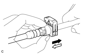 (3) If the fuel tube connector and the fuel pipe are stuck, push and pull the fuel tube connector to release it. Pull the fuel tube connector off of the fuel pipe carefully.