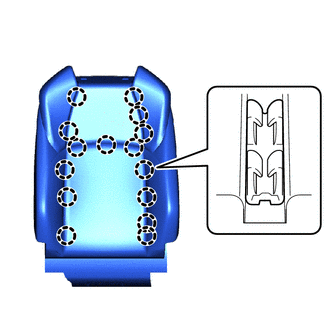 | (a) for Sports Seat Type: (1) Engage the claws to install the separate type front seatback cover to the separate type front seatback pad. NOTICE: Be careful not to damage the separate type front seatback cover. |
