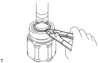 | (b) Using a snap ring expander, install a new snap ring. NOTICE: The snap ring should be installed completely. |