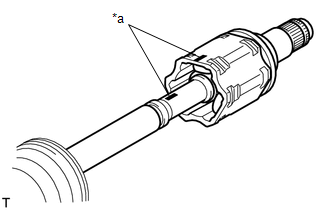 | (c) Align the matchmarks and install the tripod joint to the front drive outboard joint shaft assembly. NOTICE: Face the serrated side of the tripod joint outward and install it to the outboard joint end. |