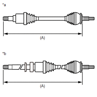 | (b) Check whether the dimension (A) of each drive shaft is within specification. Dimension (A):