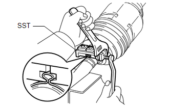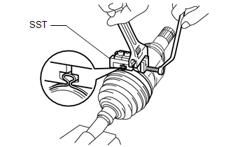 (c) Tighten SST so that the rear drive shaft inboard joint boot clamp is pinched.