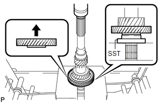 | (a) Using SST and a press, install the 6th drive gear to the input shaft. SST: 09309-14040 | |