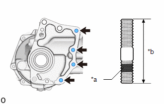 | (b) Using 2 nuts, install 4 new stud bolts in the locations shown in the illustration. Torque: 39.2 N·m {400 kgf·cm, 29 ft·lbf} NOTICE: Install the shorter threaded part of each stud bolt to the transfer side. |