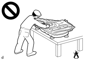 | (c) Lower the engine lifter to remove the fuel tank assembly. NOTICE: