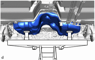 | (a) Support the fuel tank assembly using an engine lifter. HINT: Using height adjustment attachments and plate lift attachments, keep the fuel tank assembly horizontal. |