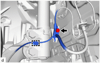 | (a) Remove the bolt, disengage the clamp and separate the front speed sensor and front flexible hose from the front shock absorber assembly. NOTICE: Be sure to separate the front speed sensor and front flexible hose from the front shock absorber assembly completely. |