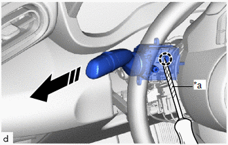 (c) Using a screwdriver with its tip wrapped with protective tape, disengage the claw to remove the turn signal switch as shown in the illustration.