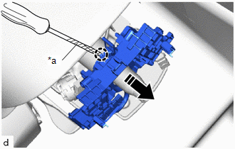 (b) While holding the clamp expanded, using a screwdriver with its tip wrapped with protective tape, disengage the claw to remove the steering wheel switch housing as shown in the illustration.