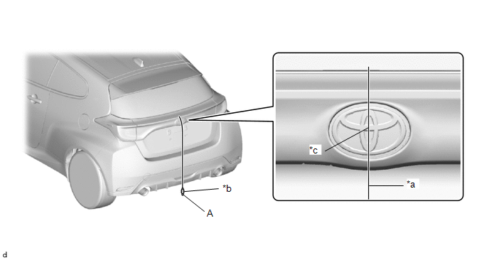 (b) Hang a weight with a pointed tip from the center of the rear emblem, and mark the rear center point of the vehicle (point A) on the ground.