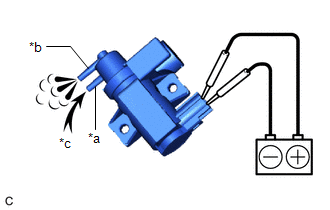 | (3) Apply auxiliary battery voltage between the terminals, and check that air flows from the port (F) when air is blown into the port (E). |
